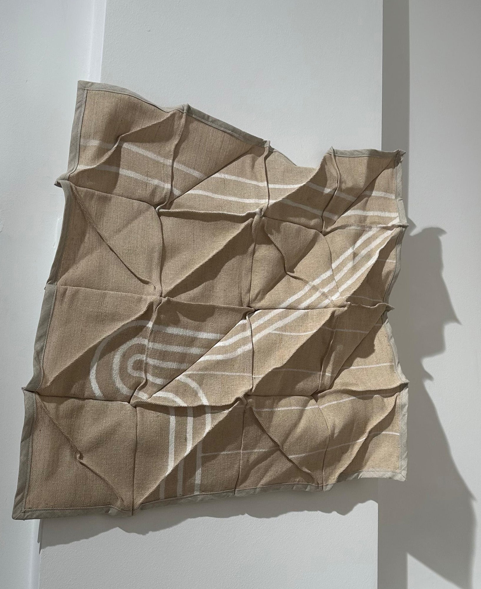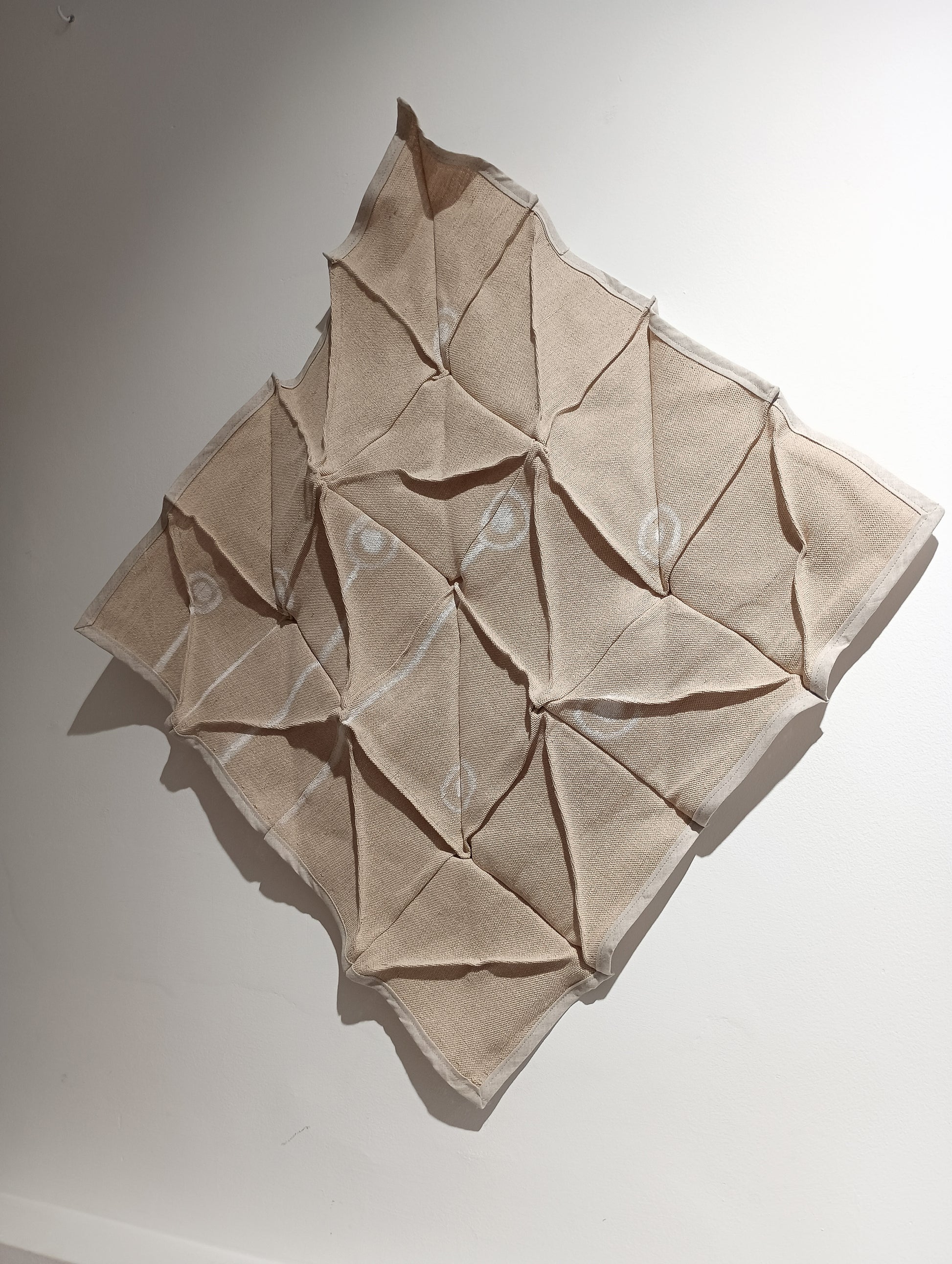 Tessuto misto iuta dipinto con colori acrilici su tela